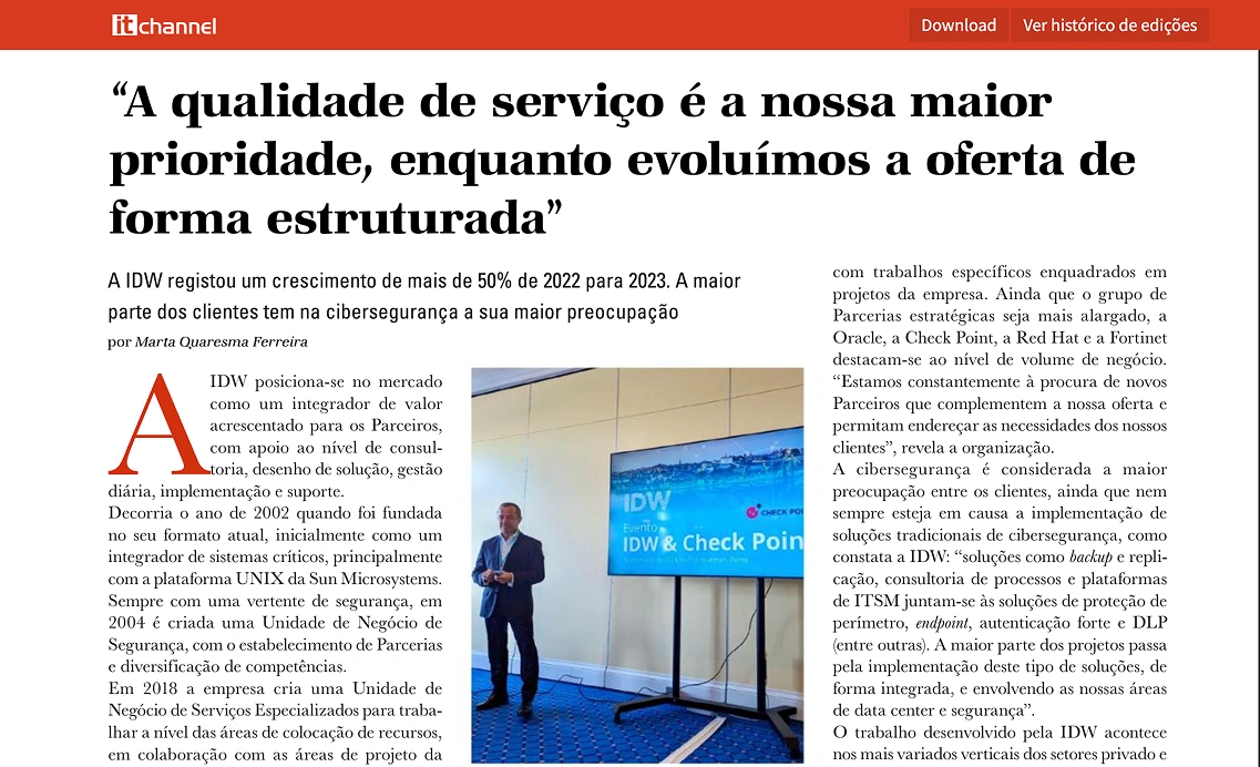 IT Channel - Maio 2024 "A qualidade de serviço é a nossa maior prioridade, enquanto evoluímos a oferta de forma estruturada”