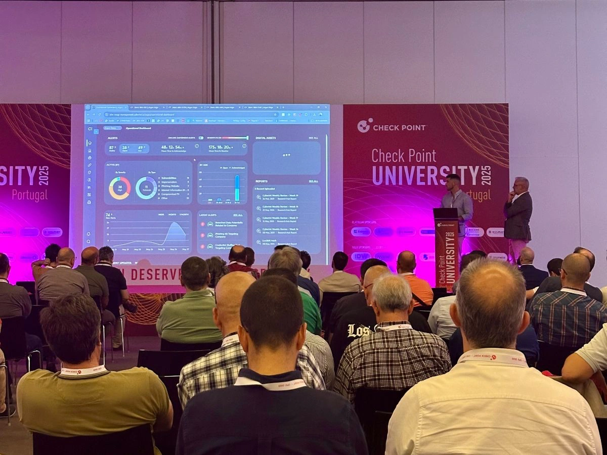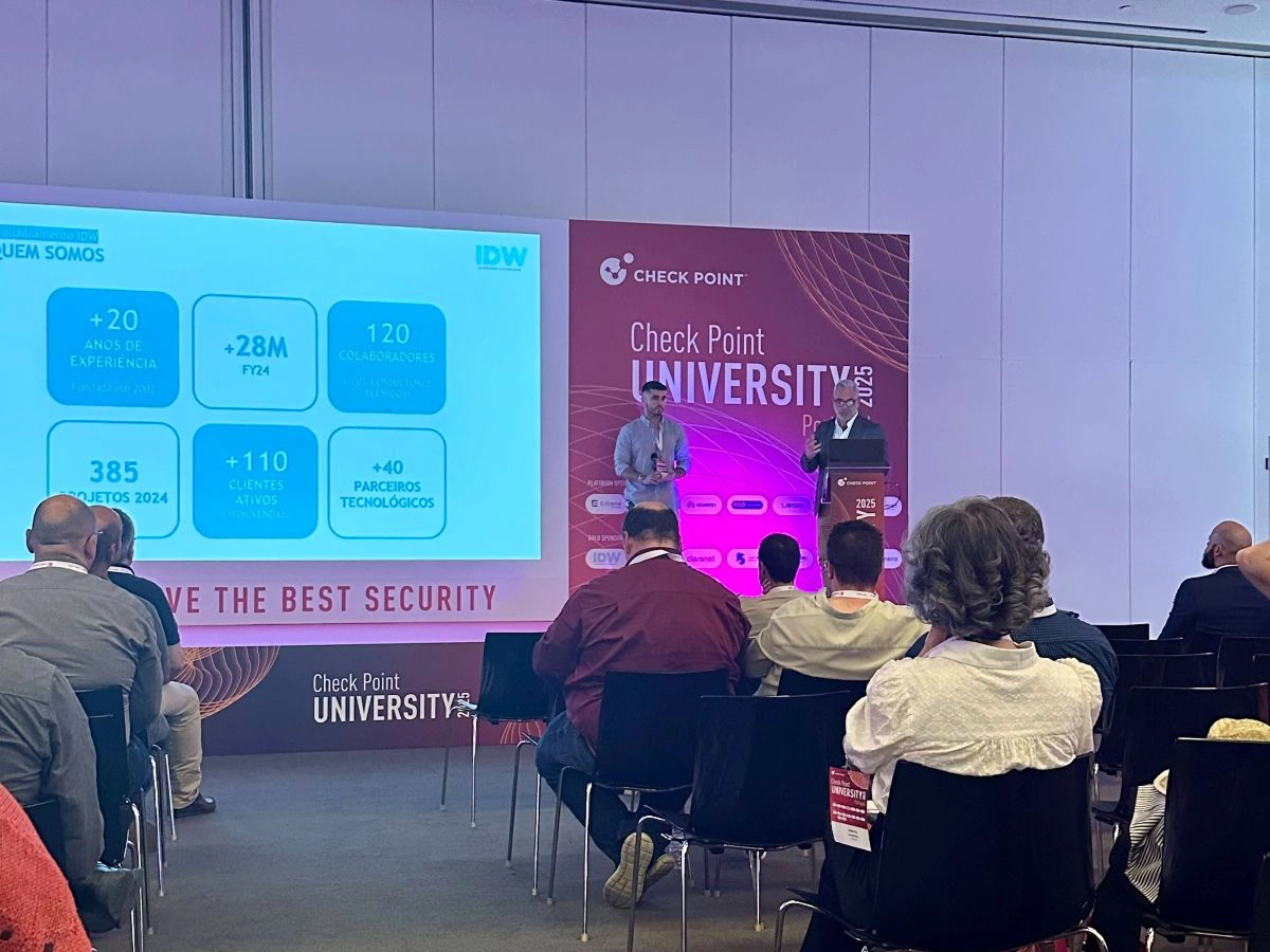 Nos dias 27 e 28 de maio, estivemos presente na Check Point University, no Troia Design Hotel, como Gold Sponsor do evento. Durante o evento, reuniram-se parceiros, especialistas e clientes para dois dias de sessões técnicas e demonstrações inovadoras. A nossa participação destacou-se com a apresentação e demo da plataforma ERM Check Point Cyberint, realizada pelo CTO Pedro Torradinhas e pelo ISN Security Consultant Gonçalo Duro. Uma intervenção que reforçou o nosso posicionamento como referência em soluções de cibersegurança de próxima geração.